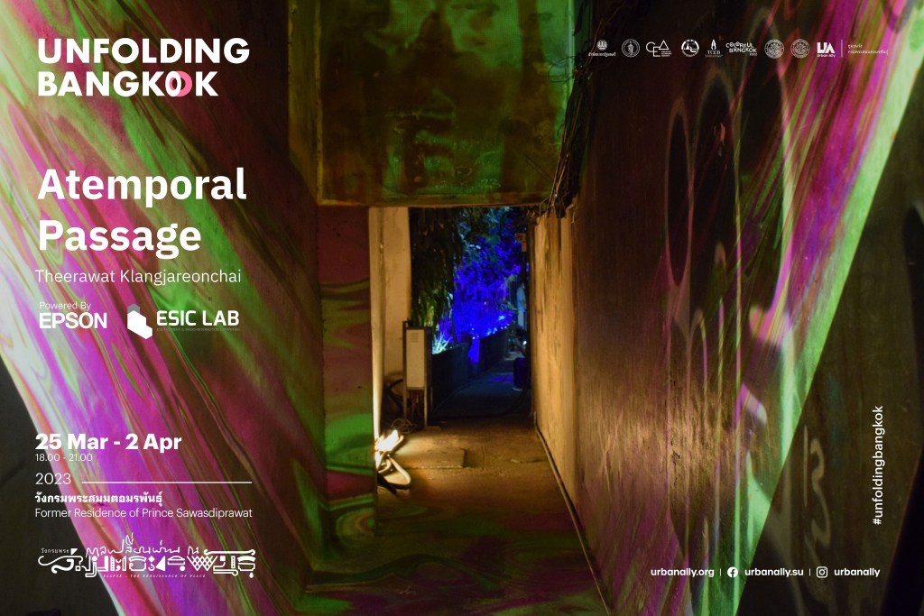 Embark on a passage through time to the Palace of Phra Sommatraphan, revitalized by luminous artistry. This work unveils a novel perspective on space, delving into the continuum of time itself. Inspired by the traditional practice of casting Buddha statues in gold, the design journey transitions from the tangible to the virtual. It navigates the intricate steps of creation, where both imagery and sound are digitally reimagined. This piece represents a dimension of light and faith, tracing the enduring trajectory of spiritual belief from antiquity to the present.