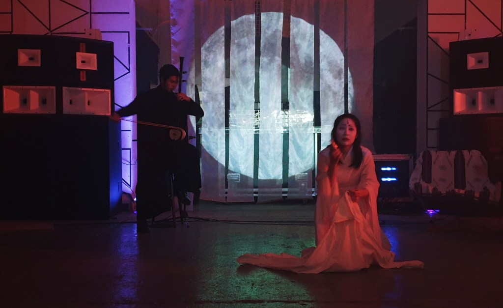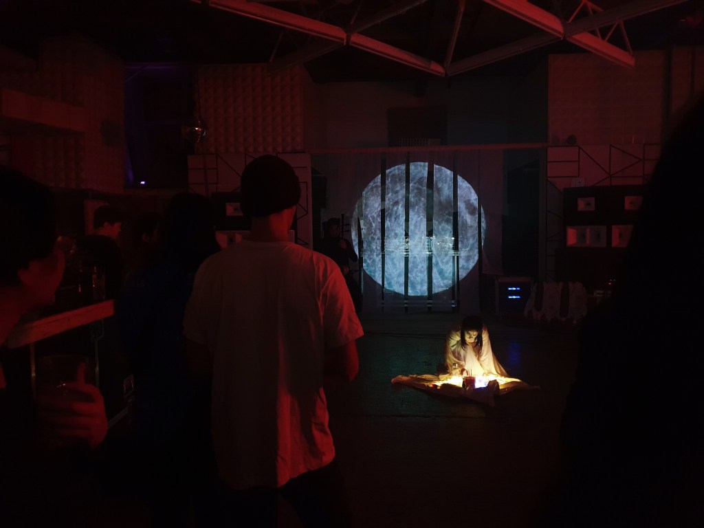 Cyber Moon is a musical performance inspired from the diasporic experience. Through the euphoria from exploring new places to the melancholy of being otherness, the performance embodies the nuance of emotions on migratorial paths. Based on the collective lyrical motives in 60s and 70s during the wave of immigration from Asian countries, the Moon is presented in many songs. In those songs, this celestial body signifies a transnational connection—an overlapping territories of homeland and faraway—as people believe the are connected to each other when we are under the same moon, disregarding the distance. The performance tells a story of two lovers in different realms underneath the same moon.